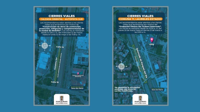 La Alcaldía de Medellín anunció que implementará cierres viales en las próximas horas.