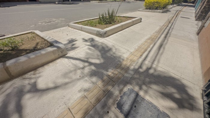 Explicó que los andenes con un ancho mínimo de 1.80 metros incluyen la guía táctil en el centro, que es una herramienta de apoyo y orientación para las personas con discapacidad visual.