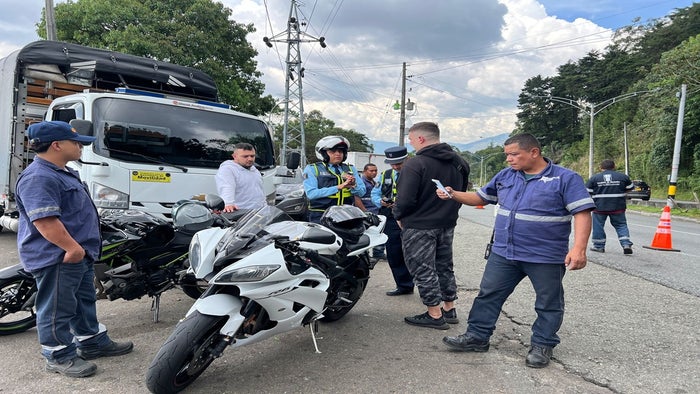 Además, explicó que este domingo lograron la revisión de más de 120 motocicletas de alto cilindraje y la inmovilización de 14 de estas, las que tenían placas abatibles, falta del certificado de revisión técnico-mecánica o incumplían con la documentación requerida.