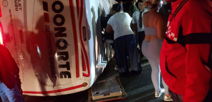 Nueve personas lesionadas, cuatro de ellas atendidas en el sitio, dejó el volcamiento de un bus de la empresa Coonorte en el kilómetro tres de la vía Llanos de Ciuvá en el municipio de Yarumal, norte antioqueño.