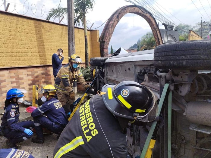 Según reportaron las autoridades viales y de emergencias, el vehículo chocó en una curva contra una moto en la que viajaban dos personas quienes volaron por encima del carro, este siguió el recorrido y un poste lo frenó, volcándose al final.