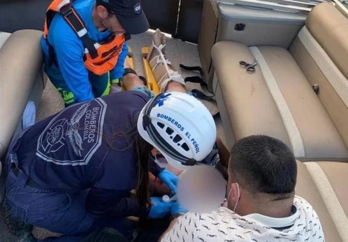 El joven de 22 años, nacido en el Peñol, presentó una fractura abierta en una de las rodillas. Por fortuna en el momento de los impactos estas personas contaban con su chaleco salvavidas, detalló la socorrista.