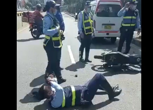El funcionario de tránsito fue traslado a un centro asistencial, donde fue atendido sin afectaciones de gravedad.