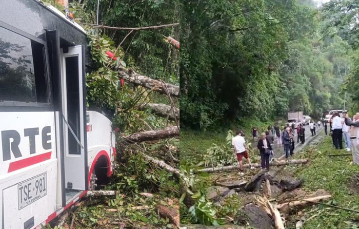 Según las primeras informaciones, el hecho se registró en la mañana de este sábado, cuando un árbol de gran tamaño cedió ante el peso y se precipitó sobre la vía, arrastrando consigo piedras de considerable tamaño. El bus de Coonorte, que transitaba por el sector, quedó atrapado bajo la vegetación y las rocas, generando un cierre total de la vía en ambos sentidos.