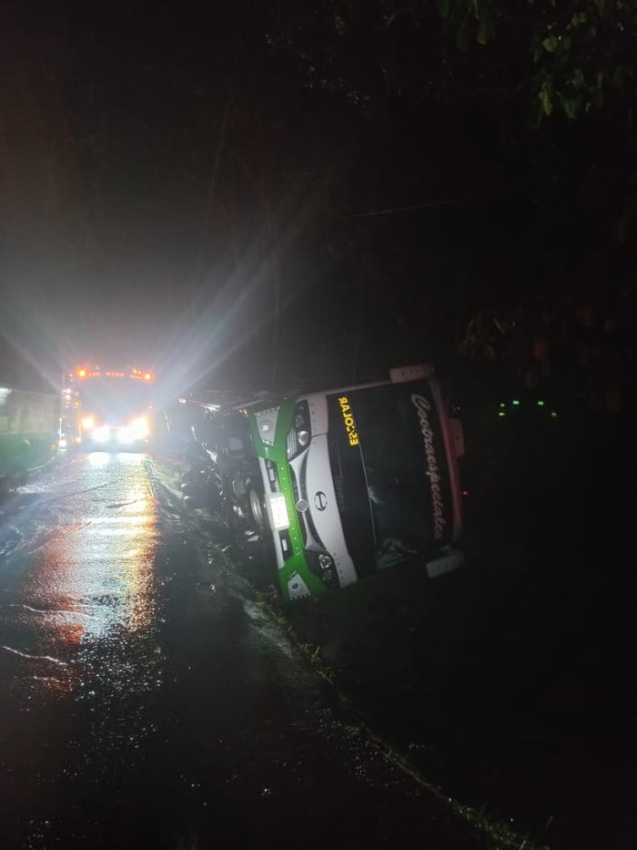 Según los reportes preliminares, las fuertes lluvias y el exceso de velocidad serían las causas del accidente, puesto que el conductor del bus estaba adelantando otros vehículos y en una de las maniobras perdió el control y se salió de la vía, lo que generó el siniestro vial tipo volcamiento lateral izquierdo.