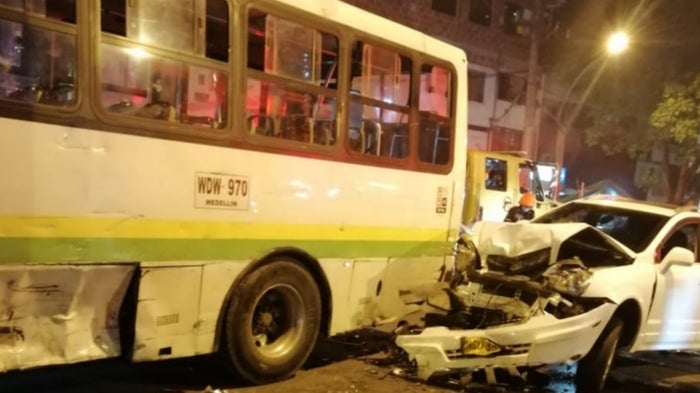 En aparente estado de embriaguez, el conductor de una camioneta arrolló a tres peatones que resultaron heridos en el sector de Carabobo Norte en Medellín. De acuerdo con las primeras versiones, el vehículo chocó contra dos buses, entre ellos un alimentador del Metro, y dos motocicletas.