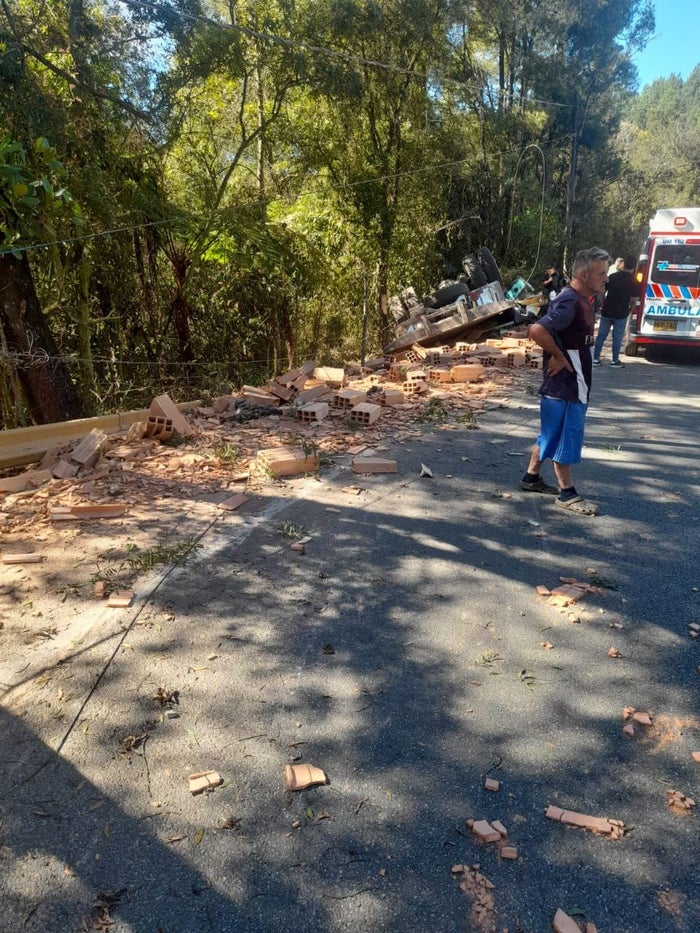 El planchón transportaba una carga de adobes que se derramó sobre la vía, durante más de 3 horas la variante de Las Palmas estuvo cerrada en ambos sentidos.