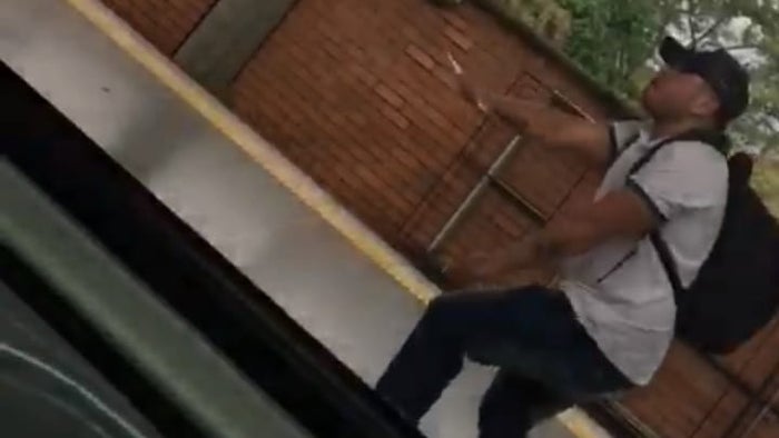Dos hombres con cuchillo en mano intentaron agredirse en la estación Envigado del sistema Metro. Los hechos se registraron en las horas de la mañana y le video fue difundo a través de redes sociales.