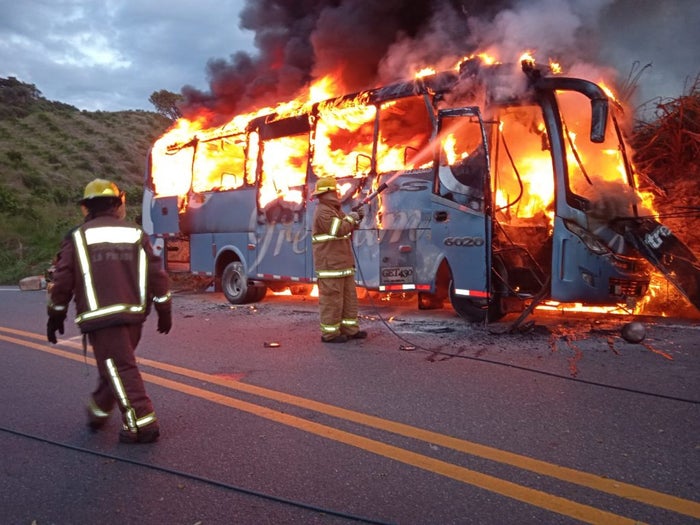 Dos buses de servicio público chocaron en la vía La Pintada-Santa Bárbara, Suroeste antioqueño, en el kilómetro 6+710. Debido al fuerte impacto, uno de los vehículos se incendió en la carretera. El cuerpo de bomberos acudió al sitio y controló el fuego. Sin embargo, el bus fue consumido por las llamas.