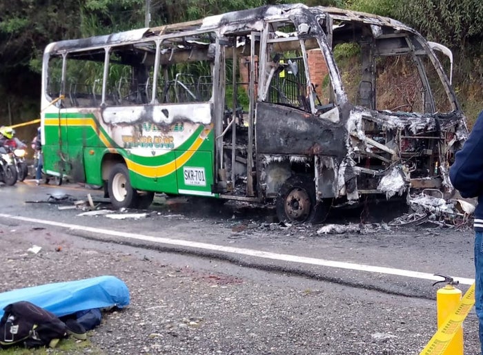 La colisión formó una bola de fuego que terminó con el bus incinerado