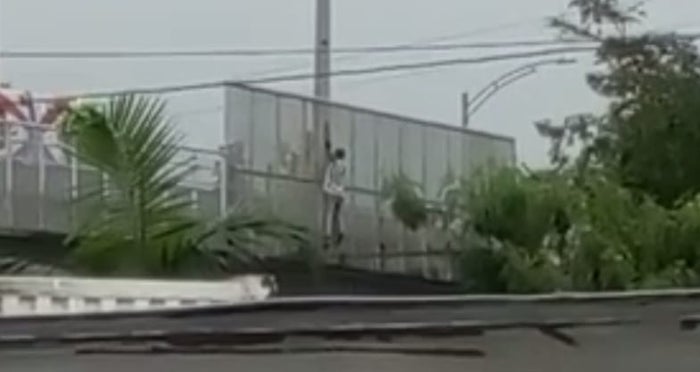 En video quedó registrado el dramático momento en que un hombre, subido a una malla de un puente, se arrojó minutos después a los rieles del sistema masivo. Según el teniente Carlos Gómez, subcomandante de bomberos de Sabaneta, esta persona sufrió algunas lesiones y fue estabilizado hasta el centro asistencial