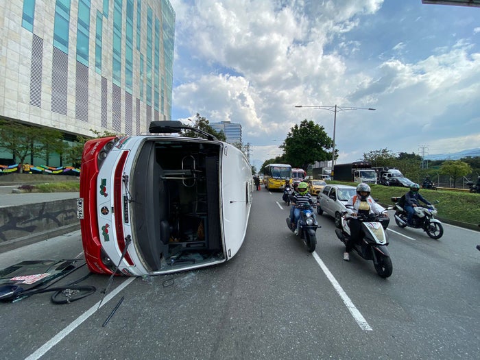 Según el reporte oficial entregado por las autoridades, el vehículo terminó volcado sobre la vía altamente transitada que comunica a los conductores que se desplazan hacia el norte del Valle de Aburrá.