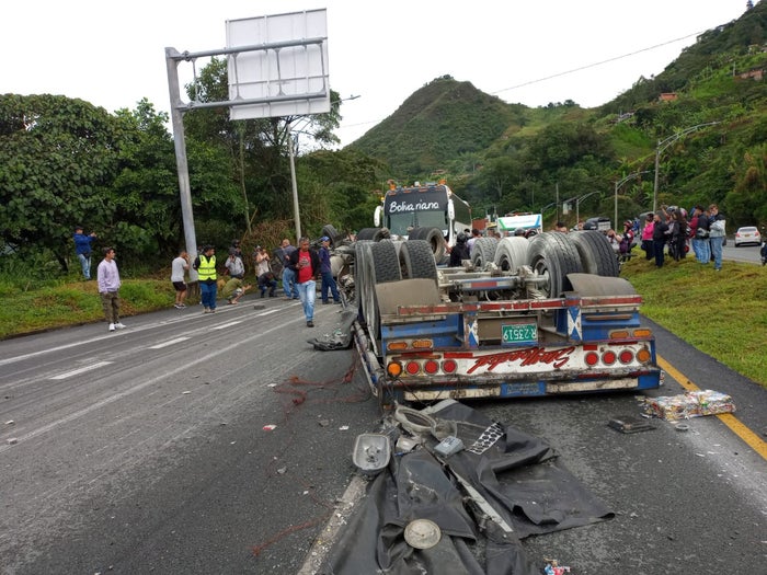 Este incidente vial se presentó exactamente en el kilómetro 36+300 metros en el sector conocido como La Aldea, en sentido oriente-occidente. De acuerdo con información preliminar, el conductor de la tractomula, al parecer perdió el control, y seguidamente pasó al otro costado de la vía en sentido occidente-oriente quedando totalmente volcado.