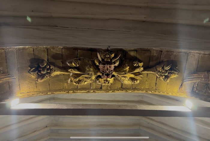 "El escultor español Thomas Rolda hizo todos los retablos, las imágenes que están en el momento e inclusive la del diablo que se encuentra en el arco toral...dicen que esta es una forma de representar la división entre lo terrenal y lo divino. Del diablo hacia atrás estaba lo terrenal donde se hacían los feligreses que en esa época eran los españoles y más atrás los indígenas. Y del diablo hacia adelante lo divino, donde se hacía el sacerdote", señaló.